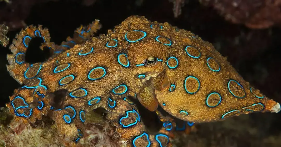 O polvo-de-anéis-azuis é identificado pelos seus anéis luminosos azuis, que se destacam quando o animal se sente ameaçado. Pequeno, medindo menos de 15 centímetros, ele habita regiões do Oceano Pacífico e Índico, geralmente em áreas próximas a corais e pedras.