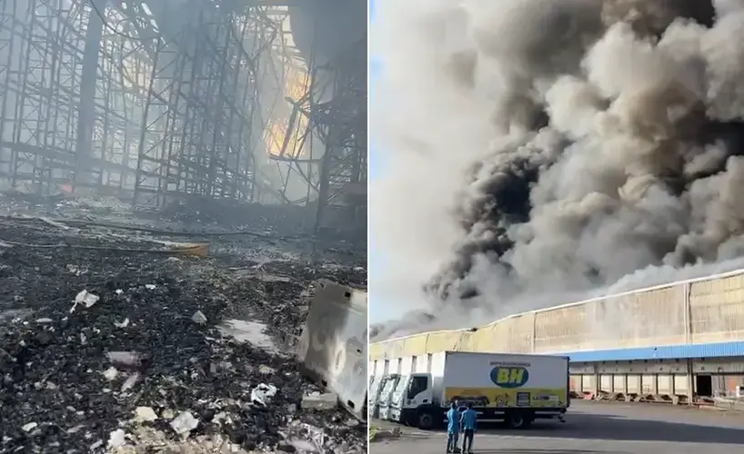 As chamas consumiram cerca de 30 mil metros quadrados da estrutura, incluindo estoque de alimentos, produtos de limpeza e equipamentos. Os bombeiros seguem usando equipamentos especializados para combater os focos em áreas de difícil acesso e garantir a segurança. Até o momento, não há feridos.